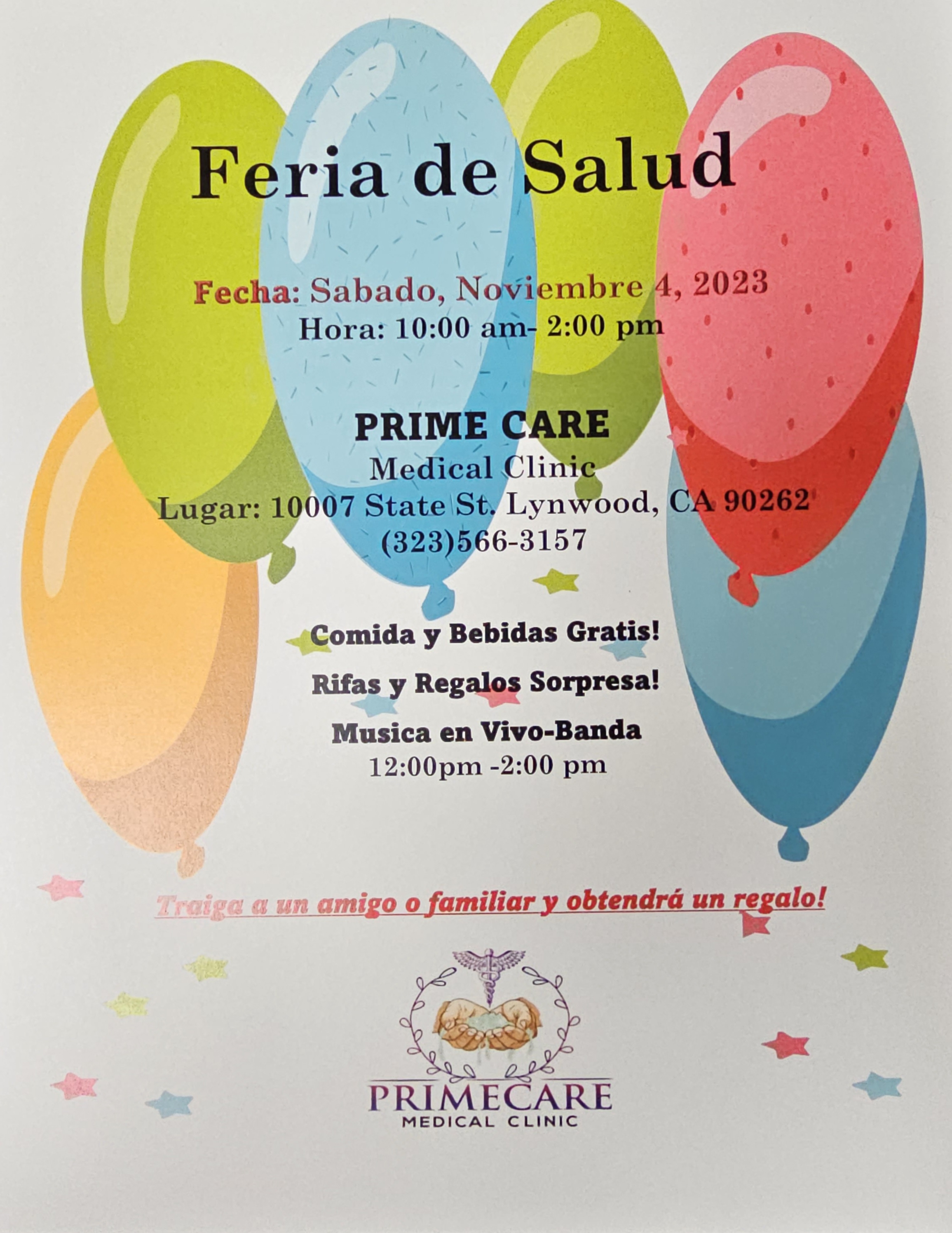 Check out the highlights from our past celebration at Primecare Medical Clinic's Feria De Salud event held on November 4, 2023! Our guests enjoyed a day filled with complimentary food and drinks, exciting raffles with amazing gifts, surprise activities, and live music by a talented band. It was a fantastic opportunity for our community to come together, learn about health and wellness, and have fun. Stay tuned for future events and join us for more unforgettable experiences at Primecare Medical Clinic!